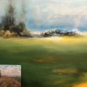 Paint in Tubes – 5-7 colors of your choosing, The colors in the sample are Liqutex heavy body- hooker green, alizarin crimson, light yellow, white, light permanent blue, red, violet blue, sap green. Any size canvas, plastic table cloth that fits the table, paper towels are a must, a water bucket, small spray water battle.